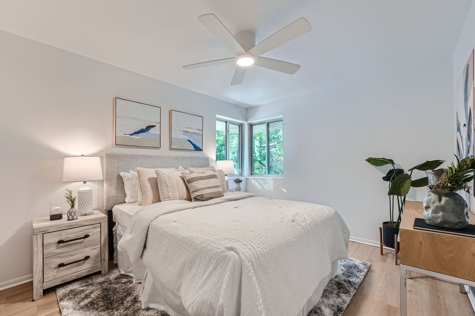 This one-bedroom, one-bathroom apartment home is a 550 square foot, corner apartment with additional windows to allow beautiful natural light. Interior finishes may vary in unrenovated apartment homes.