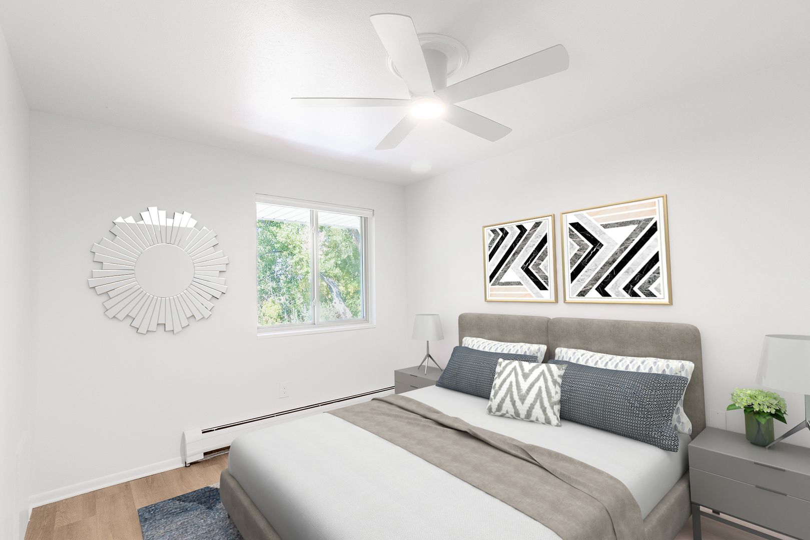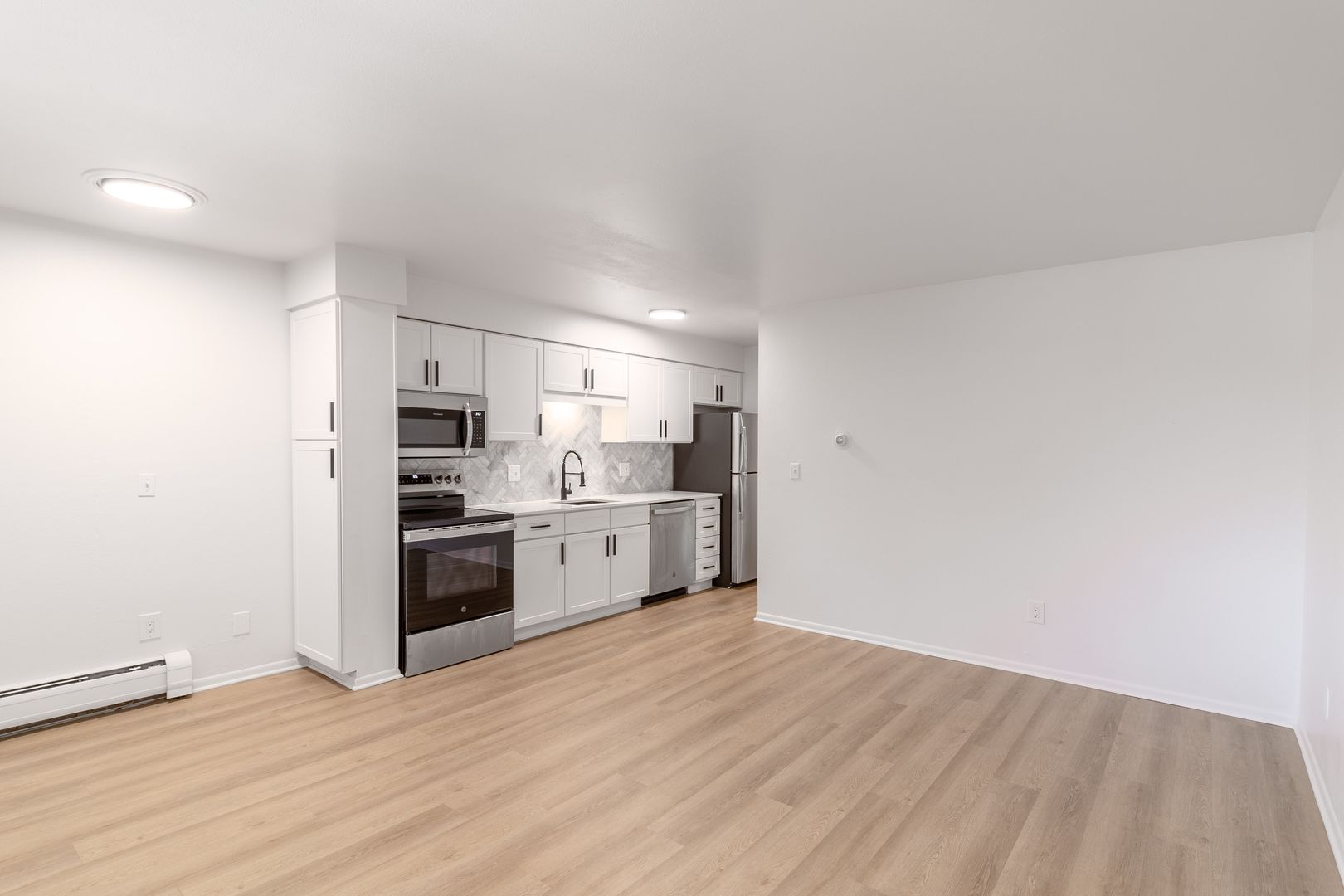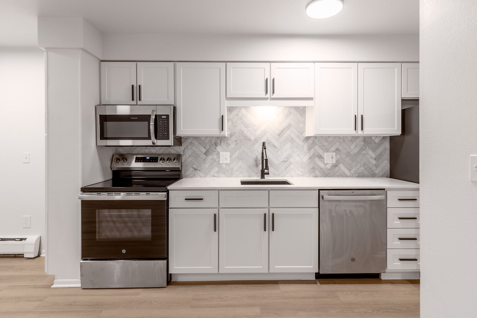 Portals Apartments feature thoughtfully redesigned 1-bedroom apartment homes with well-appointed interiors. Our renovated apartment homes (coming soon!) include quartz countertops, stainless steel appliances, elegant luxury vinyl plank flooring, new shaker-style cabinetry and modern lighting and hardware fixtures.