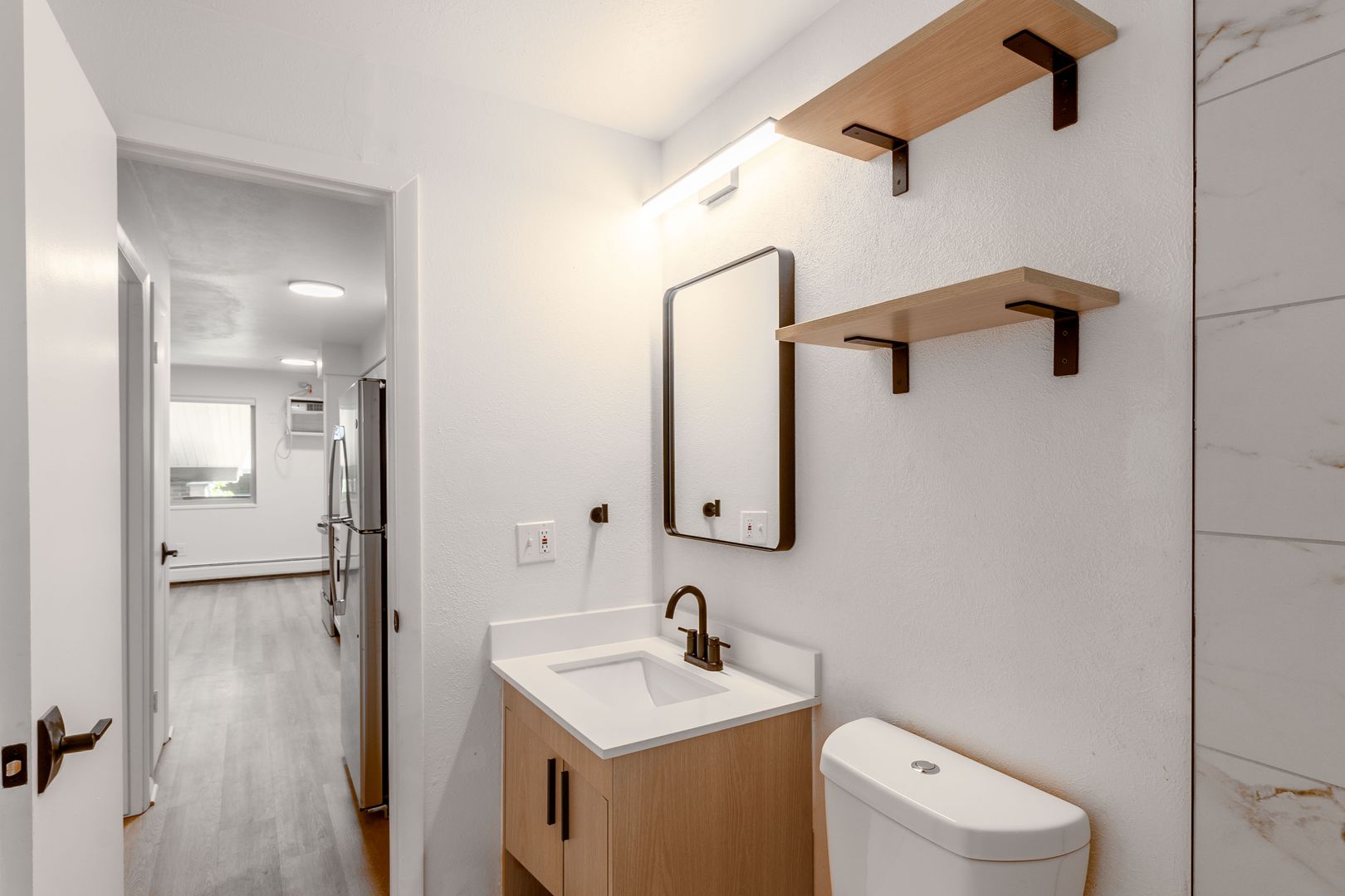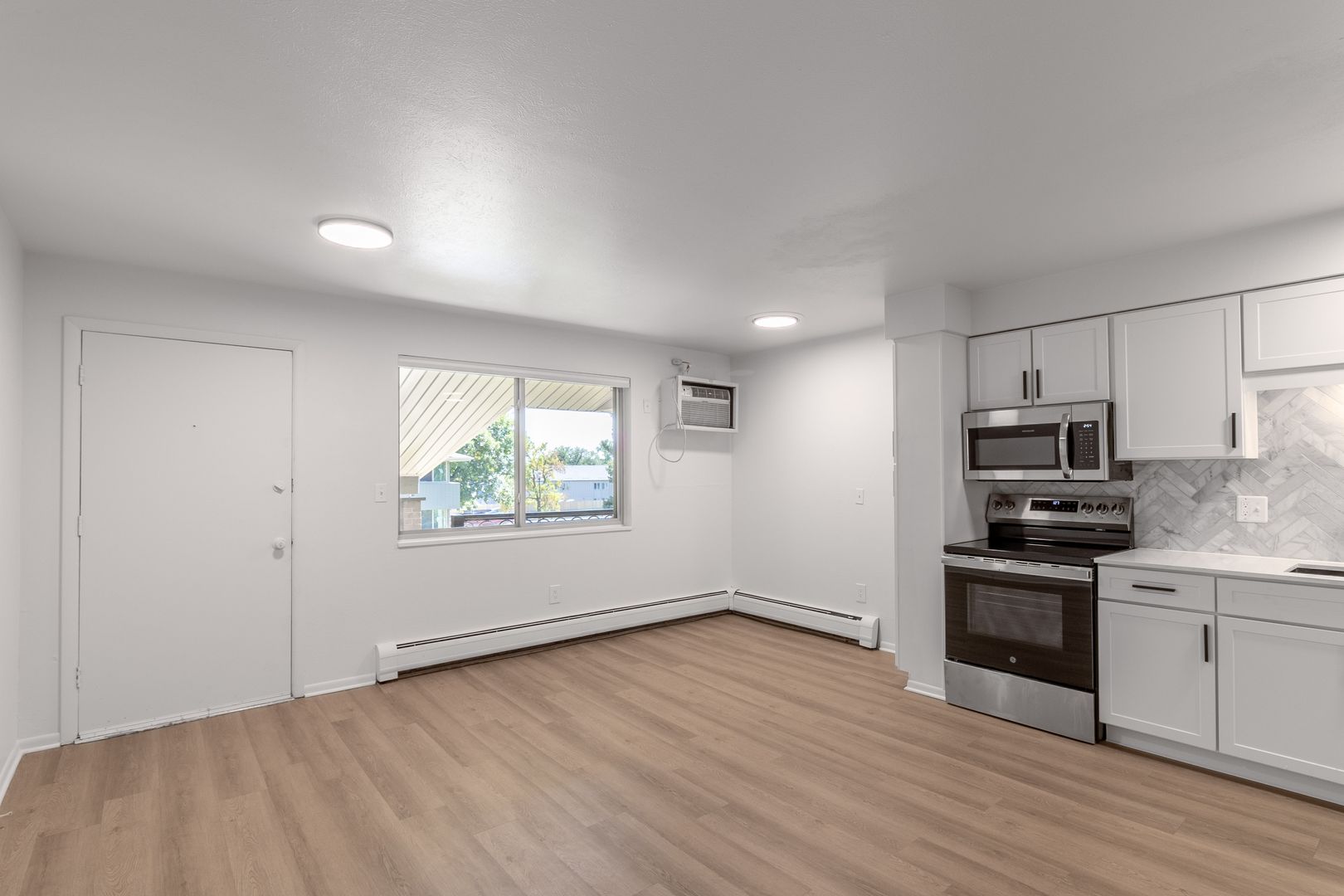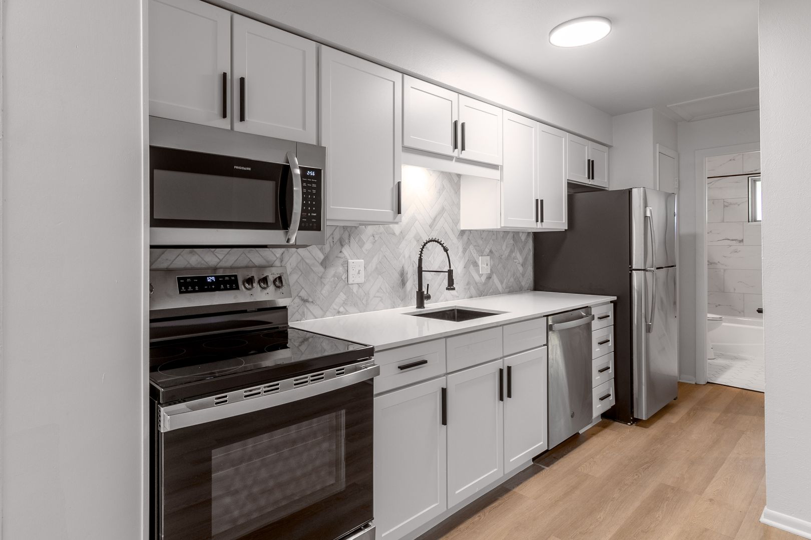 Portals Apartments feature thoughtfully redesigned 1-bedroom apartment homes with well-appointed interiors. Our renovated apartment homes (coming soon!) include quartz countertops, stainless steel appliances, elegant luxury vinyl plank flooring, new shaker-style cabinetry and modern lighting and hardware fixtures.